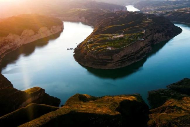 秋色中的老牛湾,山崖黄褐,秋叶斑斓,与碧蓝的黄河水形成鲜明对比,诗意而壮阔。站在高处远眺,可见黄河在峡谷间拐出一个近乎直角的大弯,静谧而蜿蜒。山脚下的老牛湾古村,石屋古朴,烽火台巍然,秋风吹过,仿佛能听见历史深处的回响。
