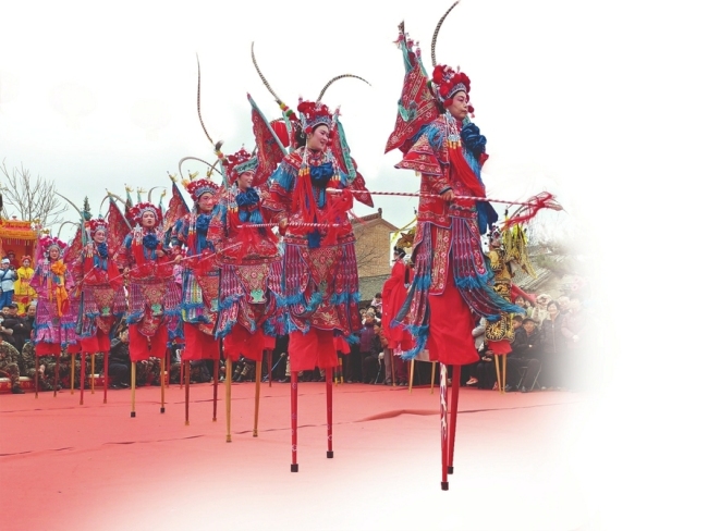 2月28日,临汾市襄汾县西中黄村上演精彩的社火表演,村民欢欢喜喜迎元宵佳节。