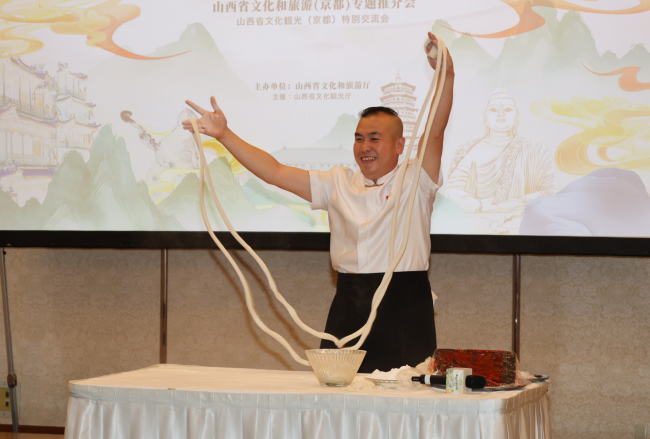 Furthermore, a joint instrumental performance of “The Sea in Spring” by Chinese and Japanese artists interpreted the blending and symbiosis of the two countries’ cultures with melodious tunes. The noodle art performance by Shanxi noodle master Wang Zhanglong, transforming dough into “Dragon’s Whisker Noodles” as fine as hair, allowed guests to experience the “art on the tip of the tongue” up close and immerse themselves in the charm of Shanxi folk culture.
