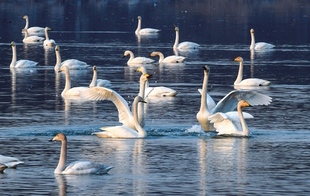 洪洞汾河国家湿地公园:白天鹅悠然游弋于水面