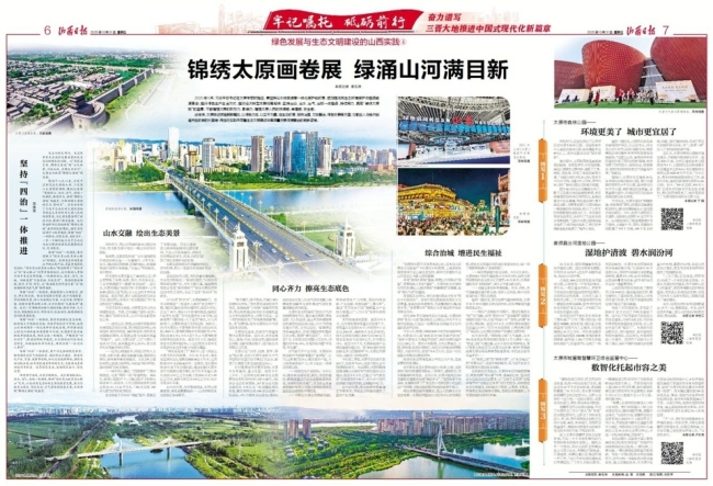 如今的太原,汾河碧波荡漾,东西山绿意葱葱,难老泉潺潺流淌……山水相映的生态画卷正徐徐展开。