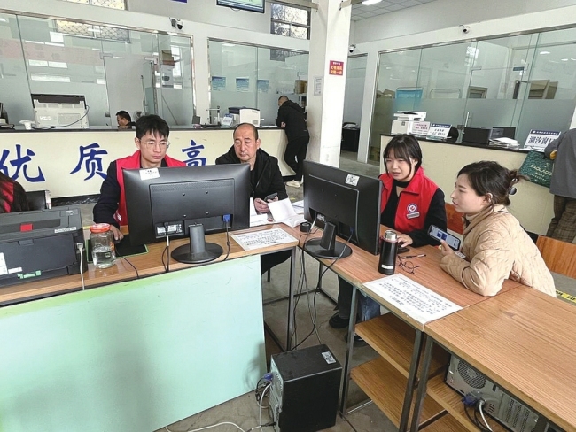 霍州市政务大厅“霍速帮”专业代办员免费帮助申请人填写表格,录入信息。